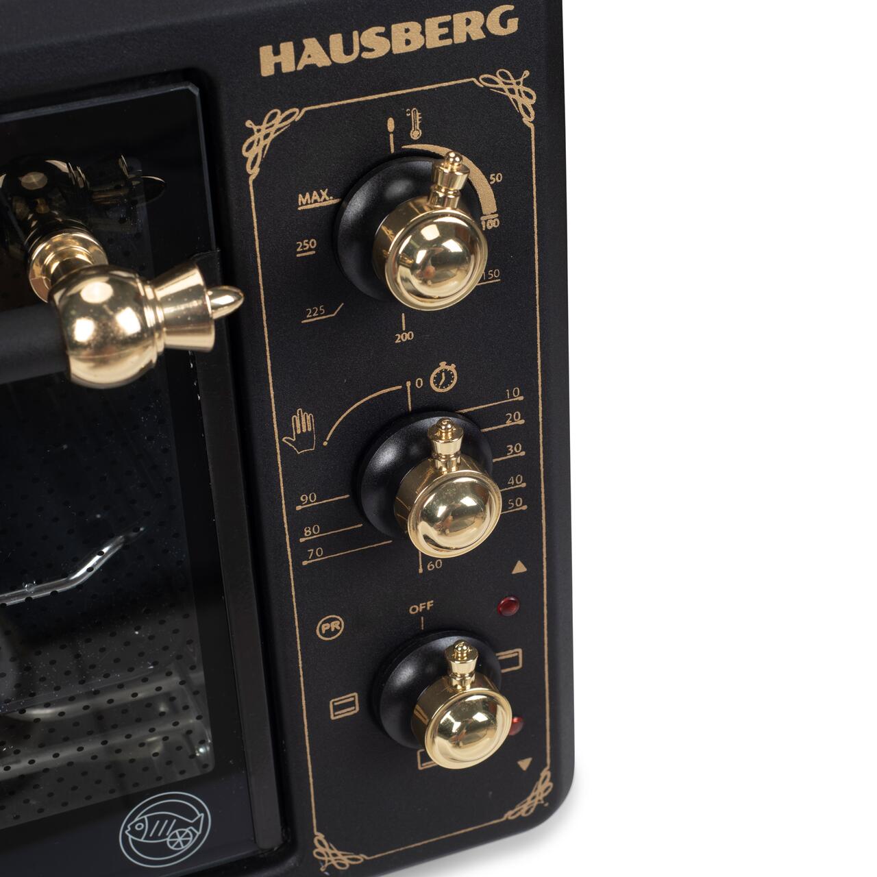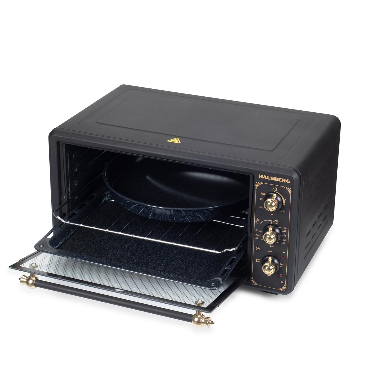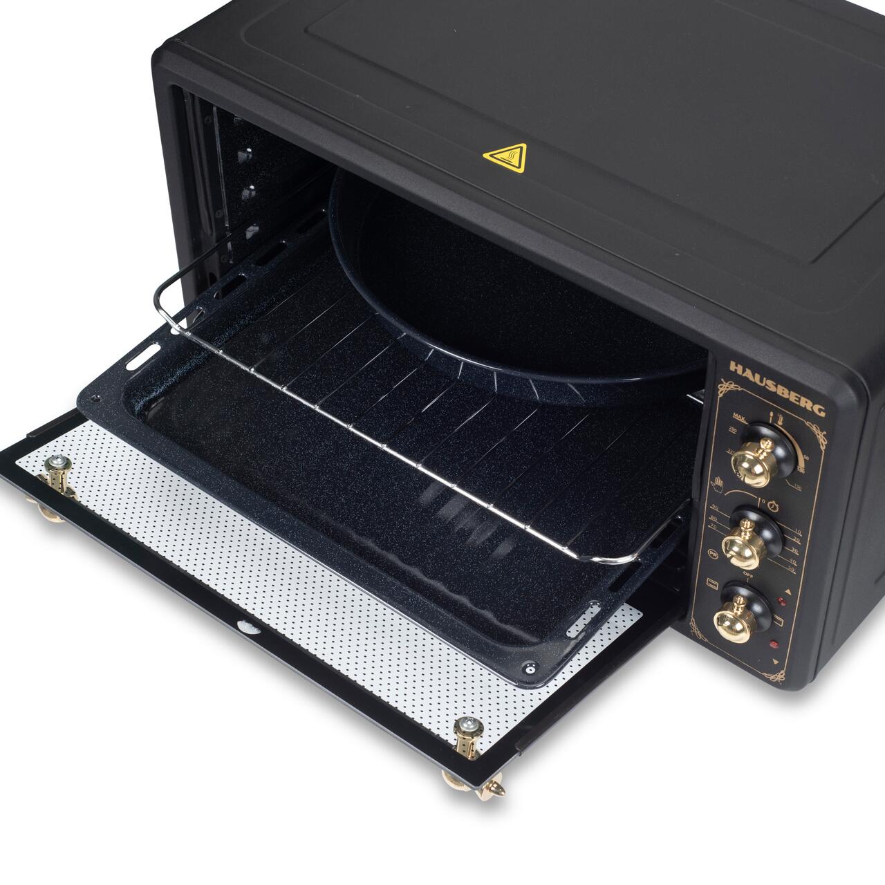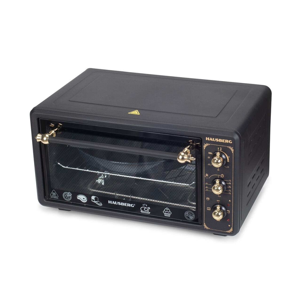 Cuptor electric Rustic HAUSBERG HB-8001RST, 1400W, 48l, Timer mecanic, Termostat reglabil, 4 nivele de inaltime a tavii, usa din sticla rezistenta la temperature ridicate, panou mecanic, Negru-Aur...