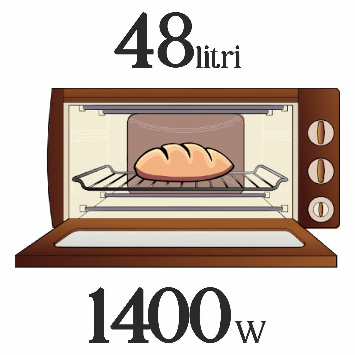 Volum interior mare – 48L: suficient pentru fripturi, prăjituri sau tăvi mari, perfect pentru familii.