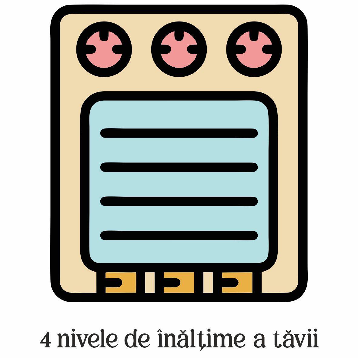 4 poziții reglabile pentru tăvi: flexibilitate în coacere și gătit.