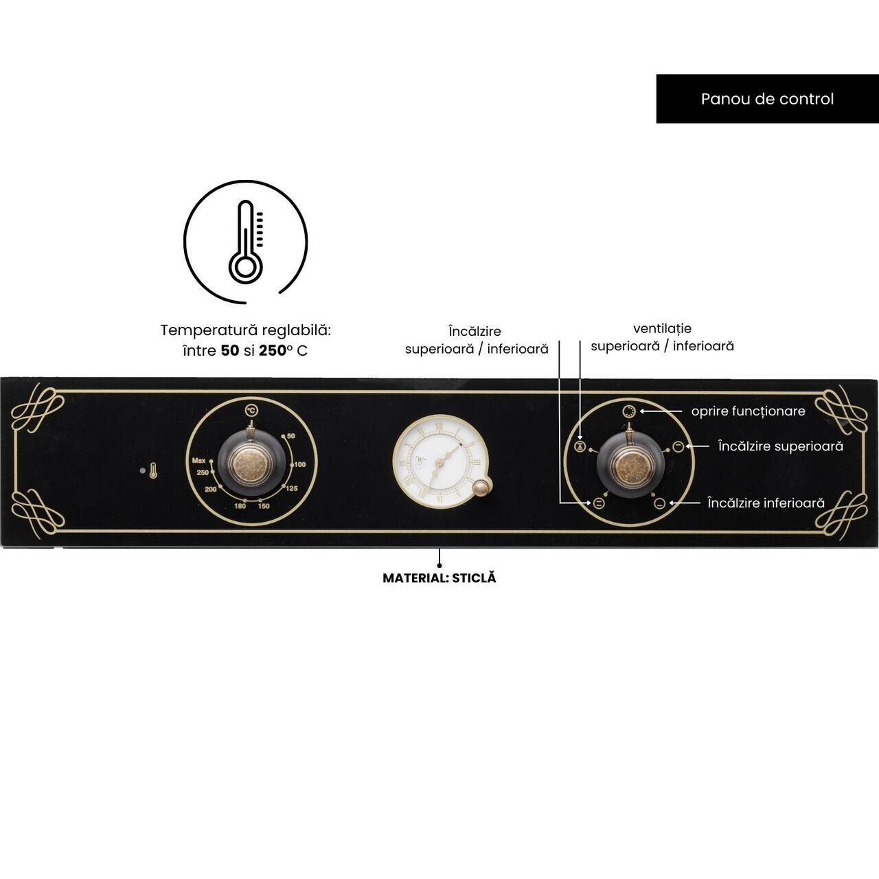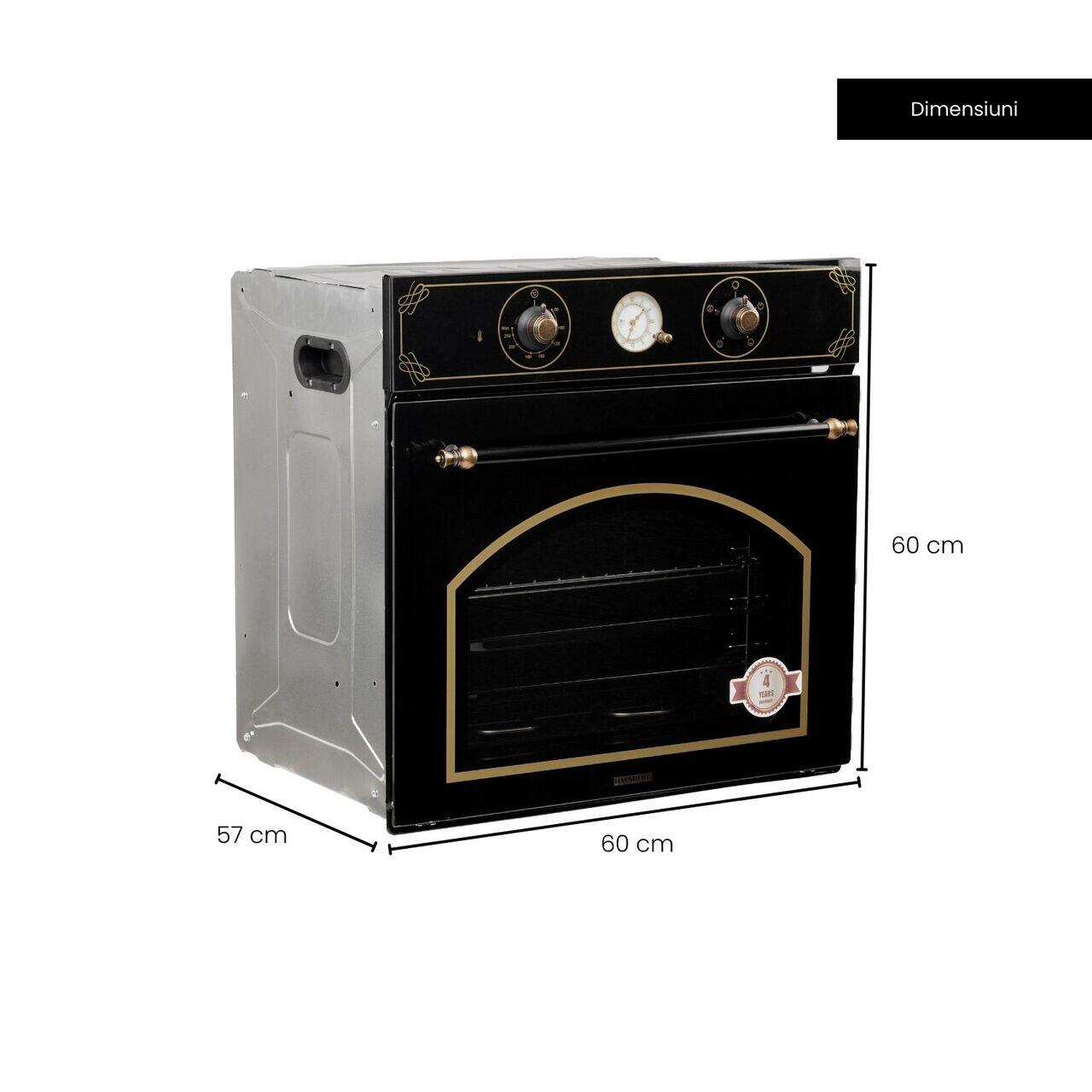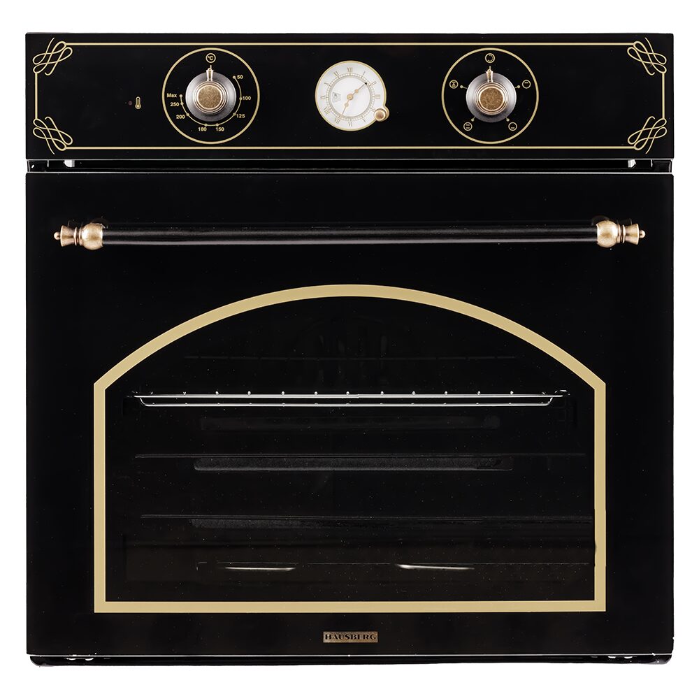 Cuptor incorporabil Hausberg HB-8055RST, Electric, Putere 2000 W, 57 l, 4 Functii, Ventilatie, Timer, Clasa A, Negru/Auriu