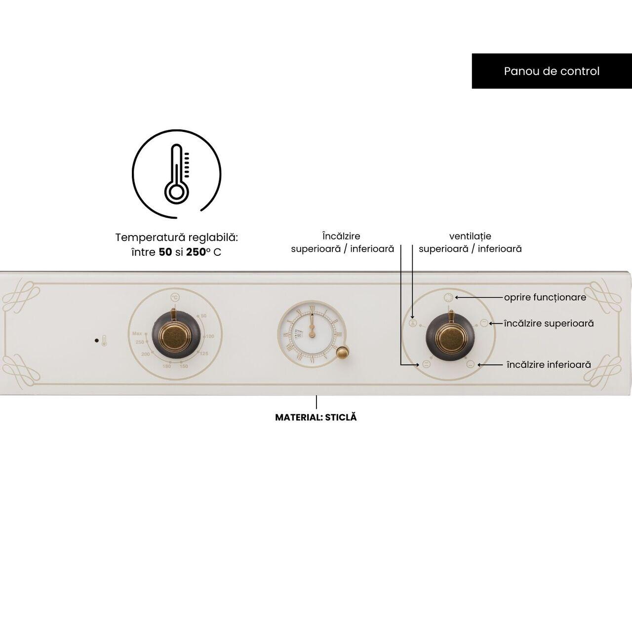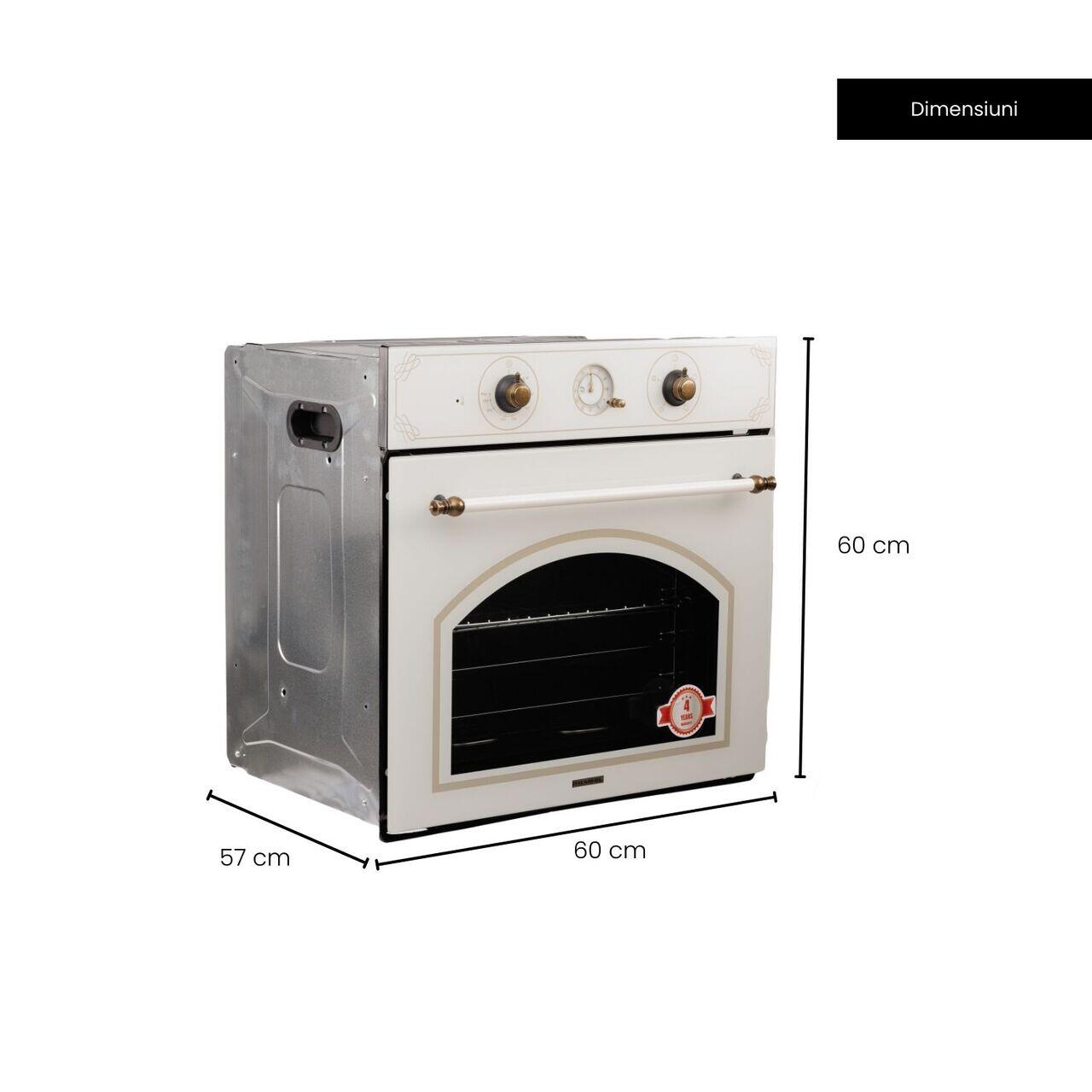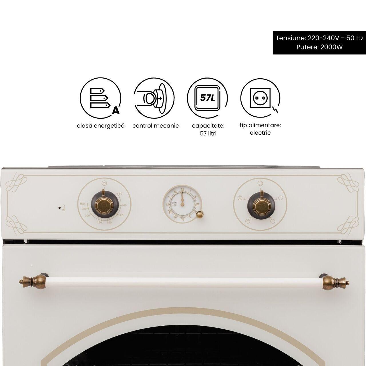 Cuptor incorporabil rustic Hausberg HB-8050, 57L, putere 2000W, culoare bej rustic