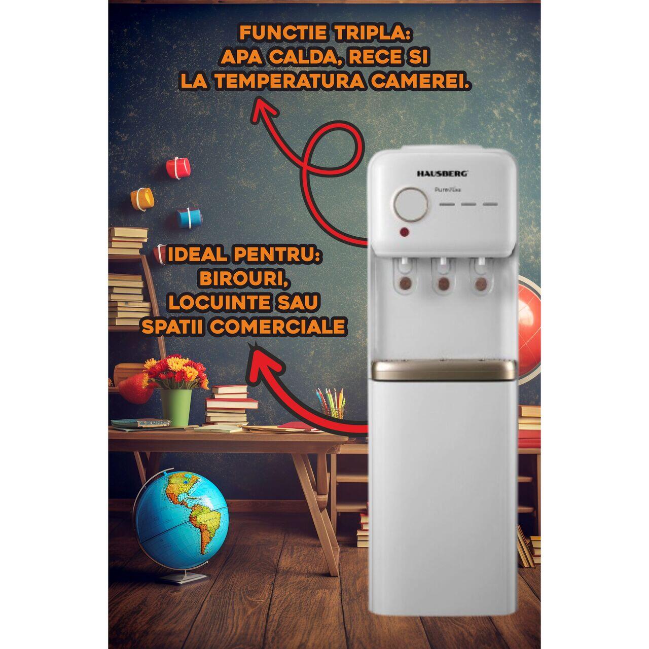 Transformă experiența consumului de apă cu dozatorul de podea Hausberg HB-6028AB. Acest model performant cu compresor este compatibil cu bidoane de 11L și 19L, oferindu-ți apă rece, caldă și la temperatura camerei, totul la un singur clic.