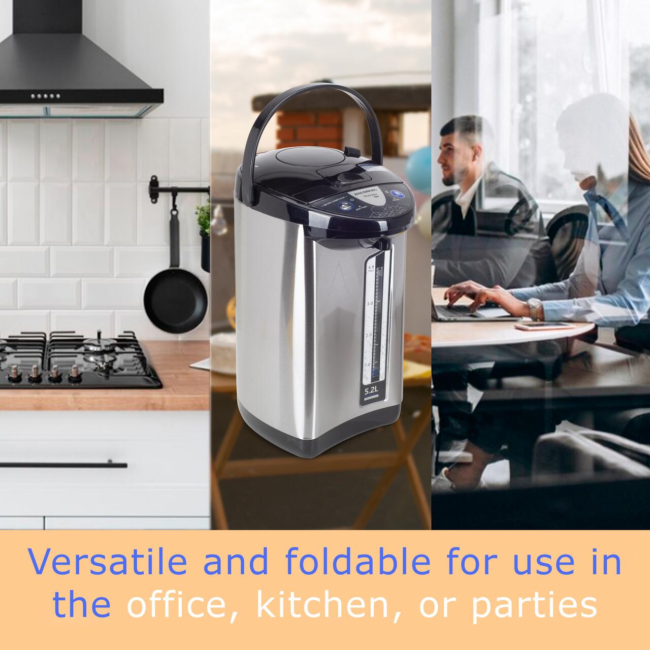 Ai nevoie de apă fierbinte rapid și menținută la temperatura ideală? Hausberg HB-3645IN este soluția perfectă! Cu o capacitate generoasă de 5,2 litri, acest thermo pot multifuncțional îți asigură apă fierbinte mereu la îndemână, ideal pentru ceai, cafea instant sau alte băuturi calde.