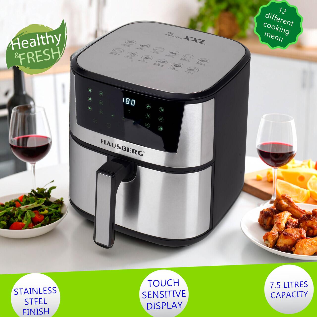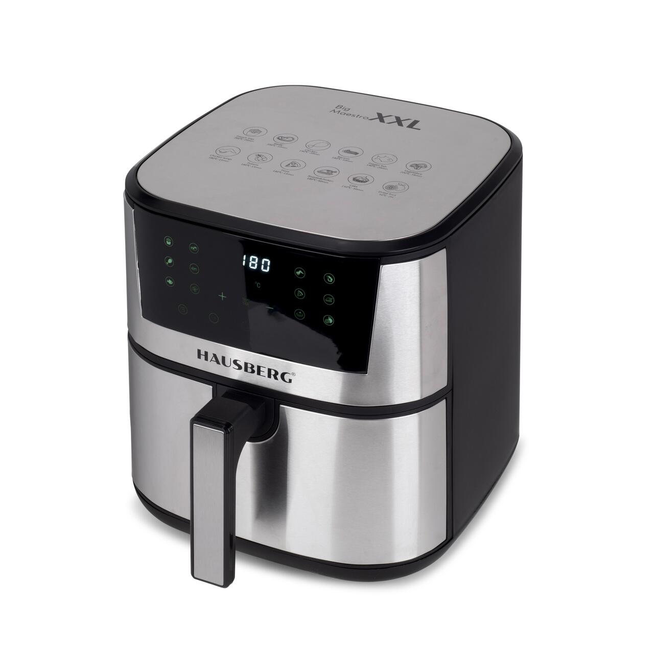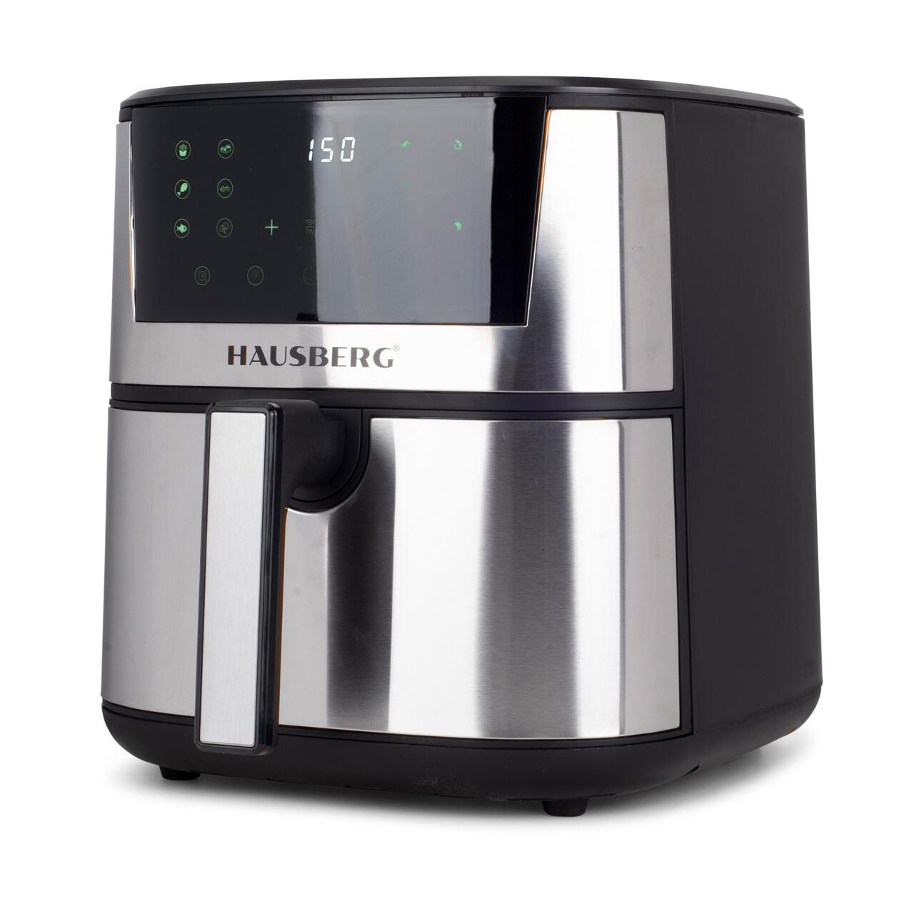 Friteuză Digitală cu Aer Cald Hausberg HB-2363IN – 7,5L, 1650-1900W, Inox, 12 Programe, LCD Tactil 🍟🥦🥩