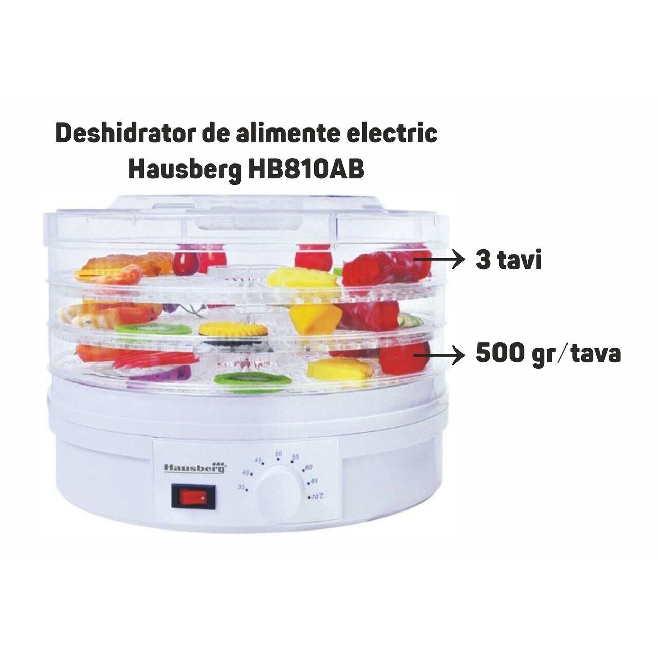 Deshidrator de alimente electric Hausberg HB810VR ,Termostatul reglabil ,Putere 250 W, motor cupru, ALB