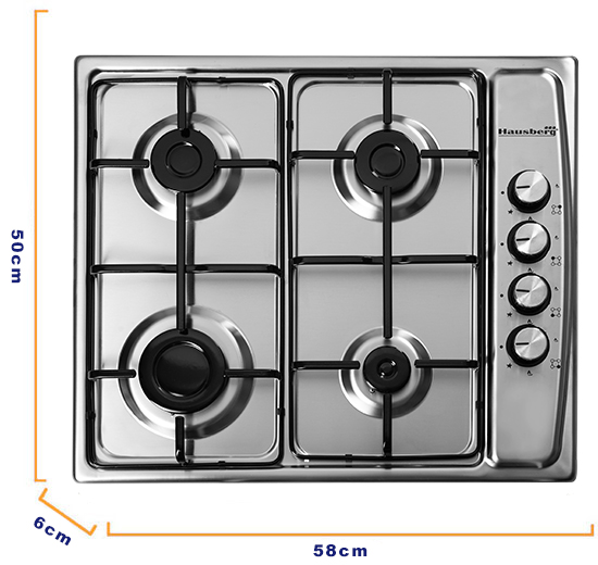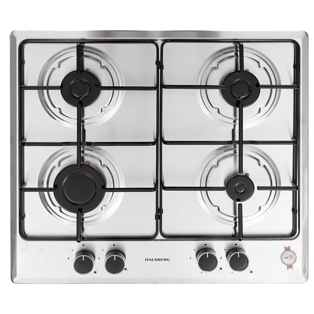 Plita incorporabila Hausberg HB 555, Gaz, 4 arzatoare, Sistem siguranta, Inox