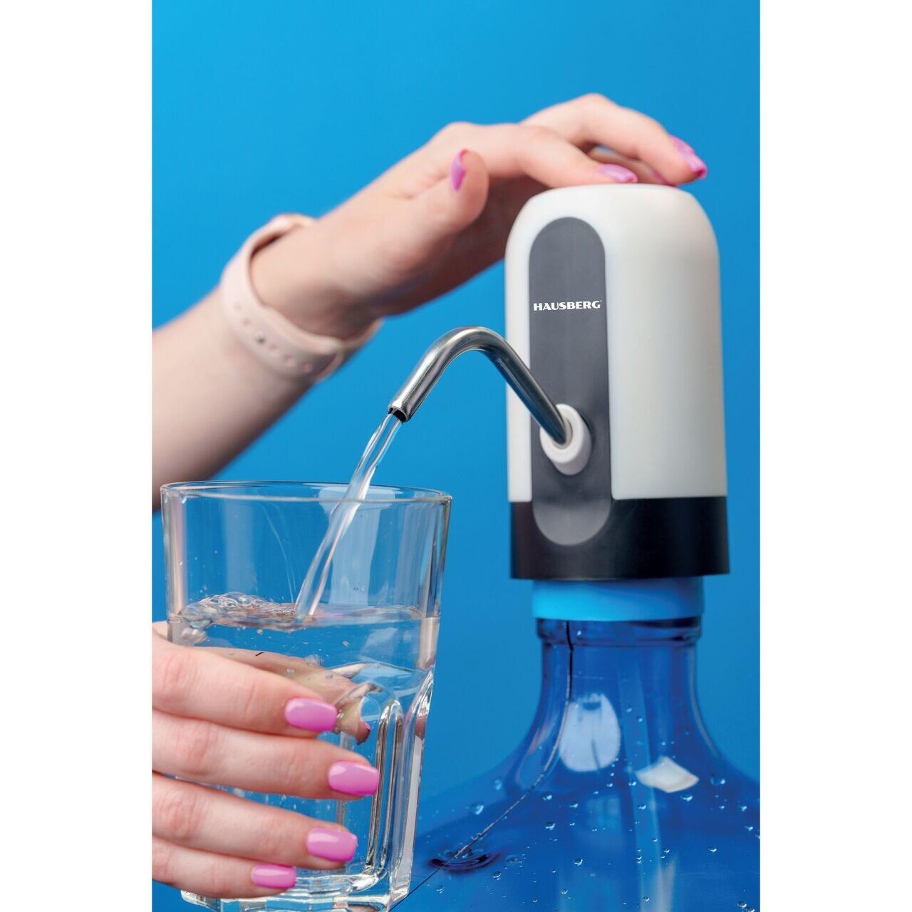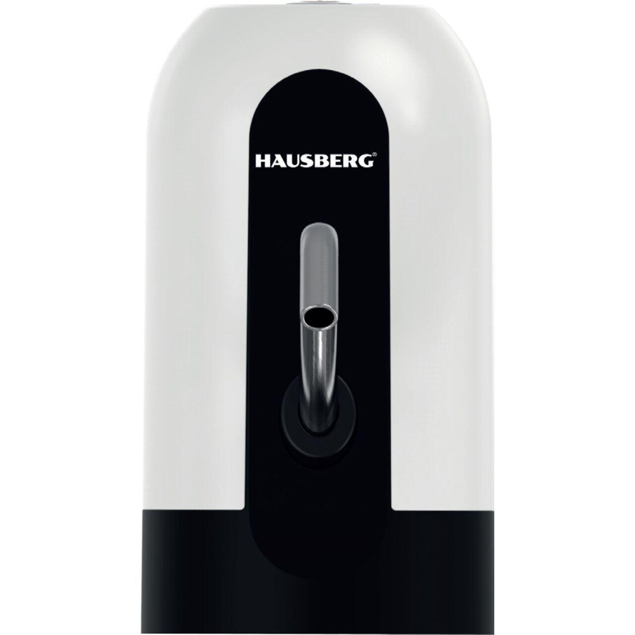 Dispozitiv electric reincarcabil de pompare apa, HAUSBERG HB-2605, din otel inoxidabil si plastic, pentru sticle PET de 10l, buton on/off, baterie incorporata, USB, alb/negru