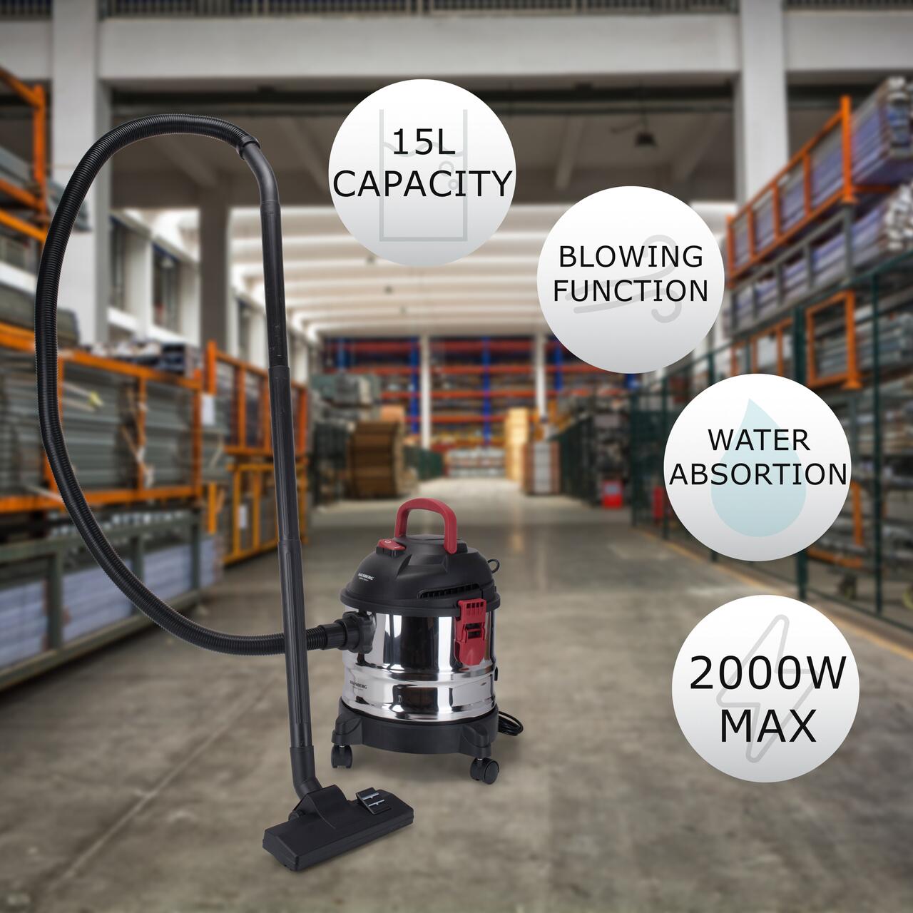 Aspirator cu sac HAUSBERG HB-2836IN, aspirare umeda si uscata, functie suflare, 15 litri, 2000 W