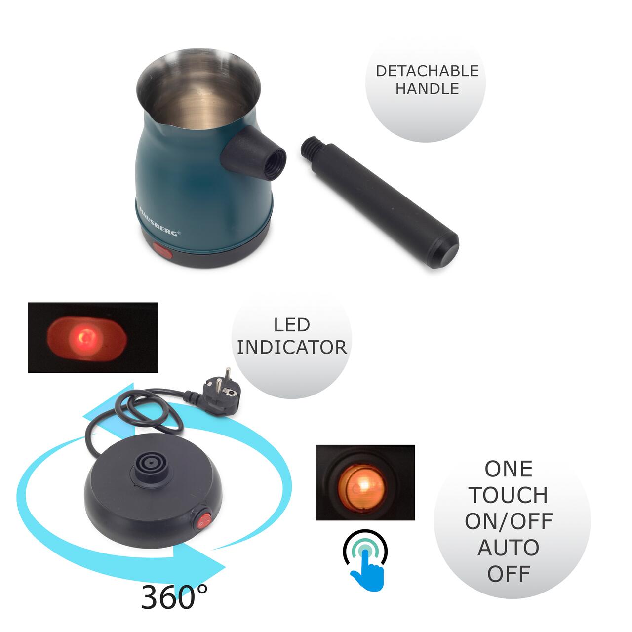 Ibric electric pentru cafea Hausberg HB-3815VR, Putere 800W, Capacitate 800 ml, Inox-Verde