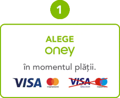 Soluției de Creditare Oney selectate, sau dețin orice alte metode de plată, așa cum sunt specificate acestea de Oney Bank. Oney Bank este o instituție de credit franceza autorizata sa desfășoare activități de creditare si de plata de Autoritatea Franceză de Control Prudențial și Rezoluție (“ACPR”), organizată și funcționând ca societate pe acțiuni în conformitate cu legislația din Franța, cu un capital social de 51.286.585 euro, înregistrată în Registrul Comerțului și Societăților din Lille Metropole sub numărul 546 380 197, cu sediul situat în str. Avenue de Flandre, nr. 34, Croix (59170), număr de telefon +40 317 305 050 și adresă de email: serviciulclienti.ro@oney.com.