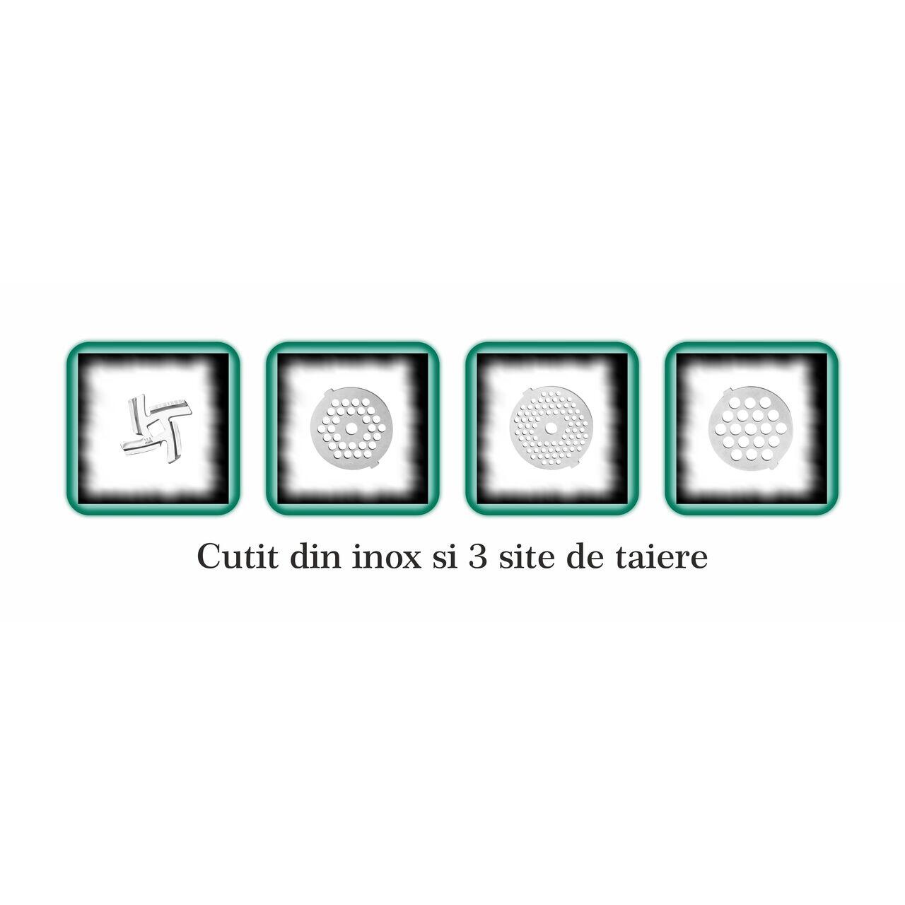 🔹 3 site din inox: 3 mm, 5 mm și 7 mm, pentru diferite tipuri de tocare.