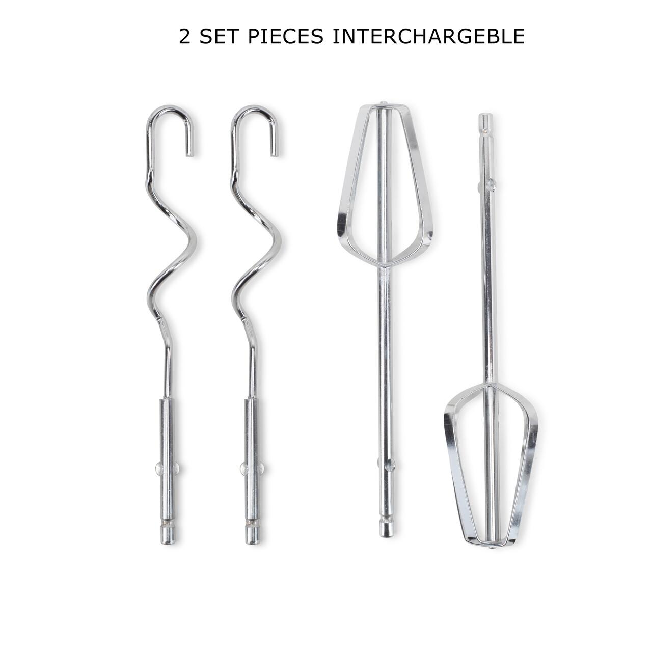 🍞 Accesorii incluse: 2 teluri pentru mixare și 2 cârlige pentru frământat aluaturi.