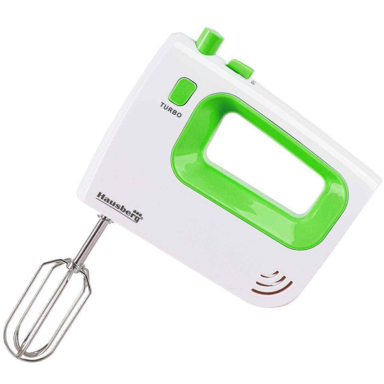 Mixer de mana Hausberg HB-4120VR, 300W ,5 viteze, Functie Turbo, Teluri si carlige metalice, Verde/Alb