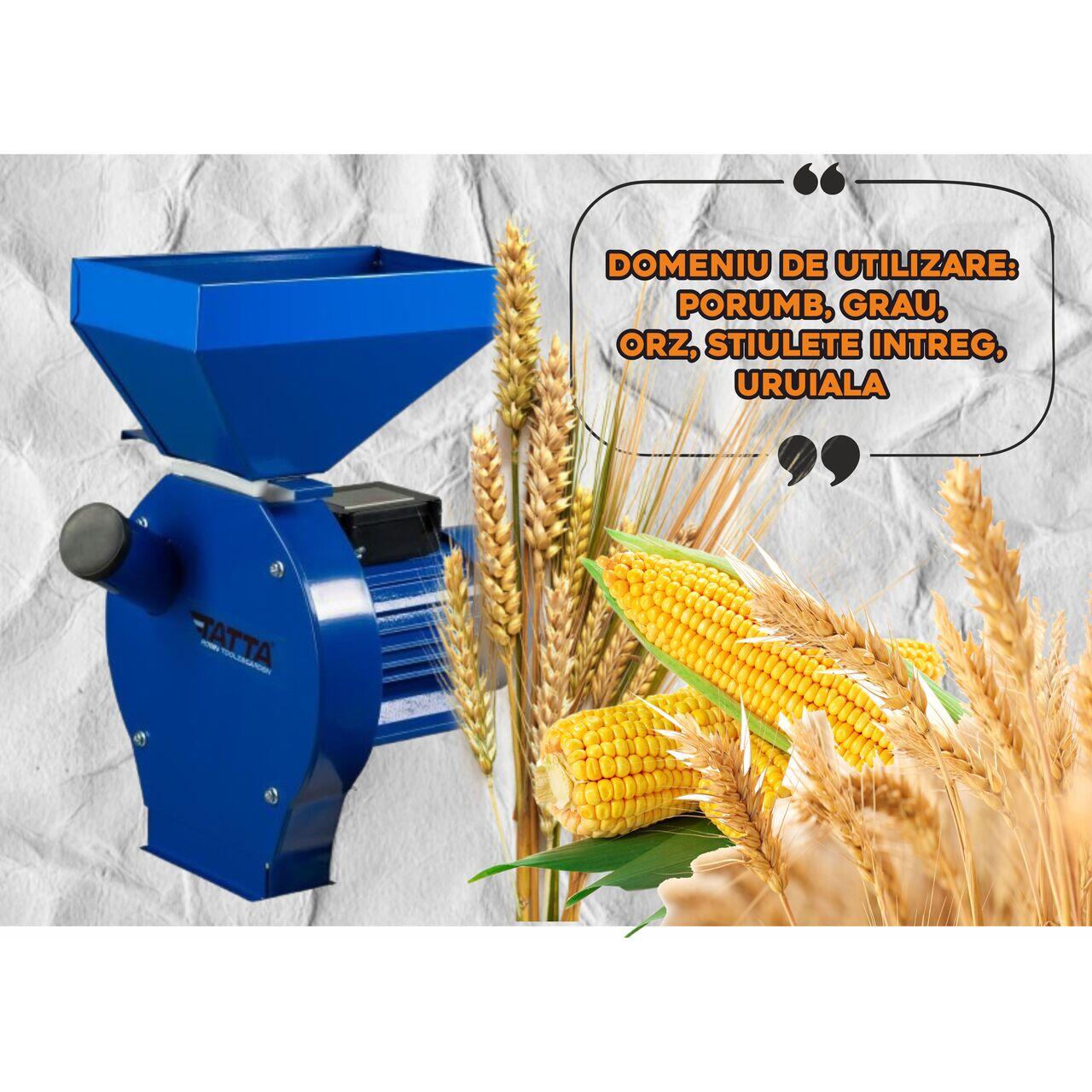 Moara Electrica Tatta TM11B, Cuva clasica, 2500 W, 240KG/Ora, Cu ciocanele macinat cereale si stiuleti