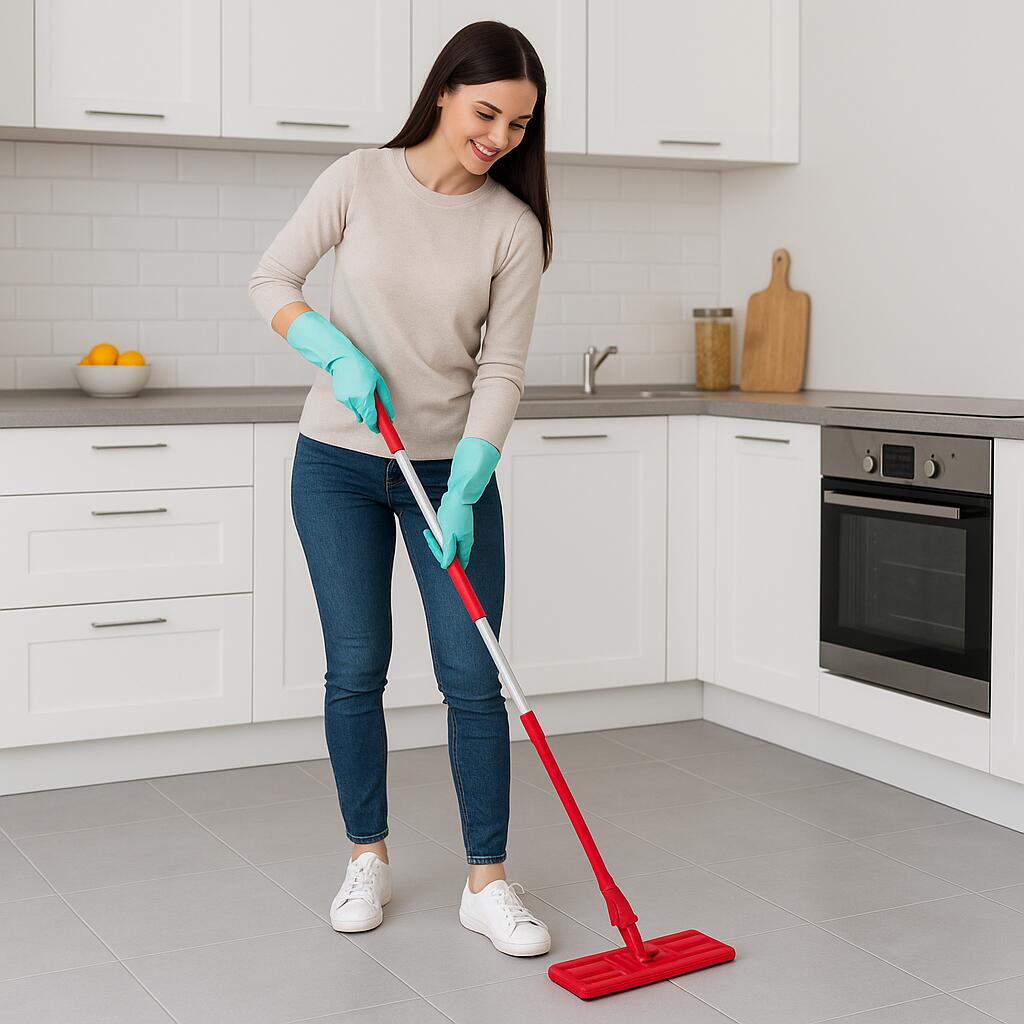 Manerul telescopic reglabil ofera confort sporit in utilizare, adaptandu-se la diverse inaltimi, iar sistemul de strangere simplificat face din acest mop un partener practic in curatenia zilnica.