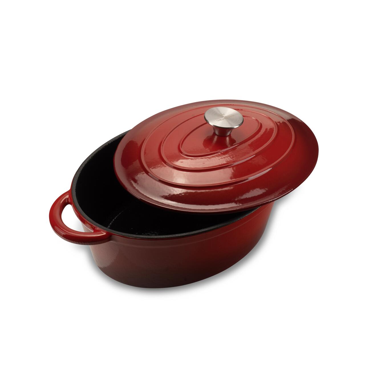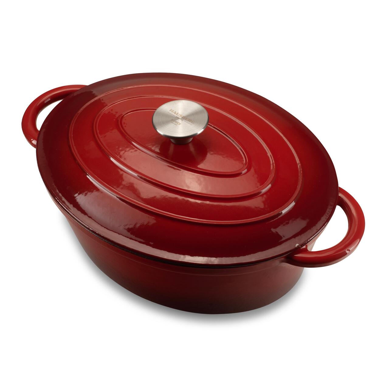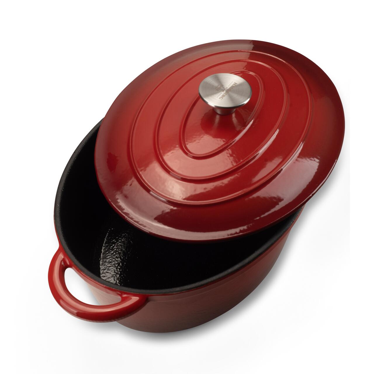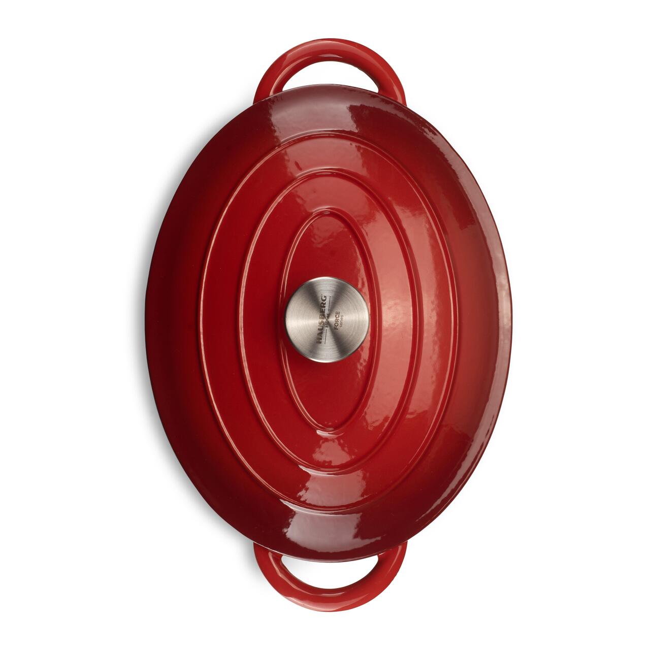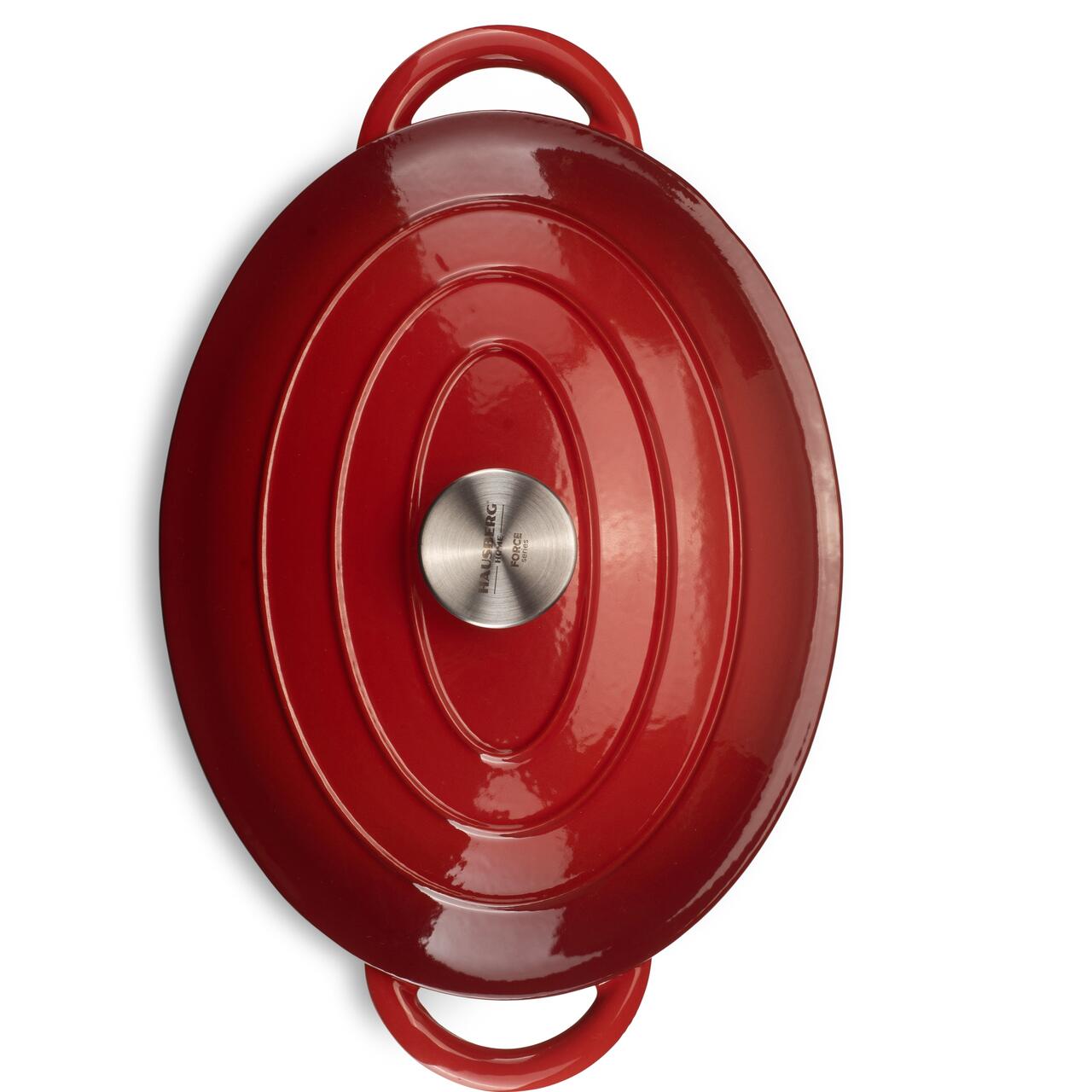 OALĂ DIN FONTĂ EMAILATĂ CU CAPAC HAUSBERG HB-H750, 4.5L, 30x23 CM, INTERIOR ANTIADERENT, ROȘU