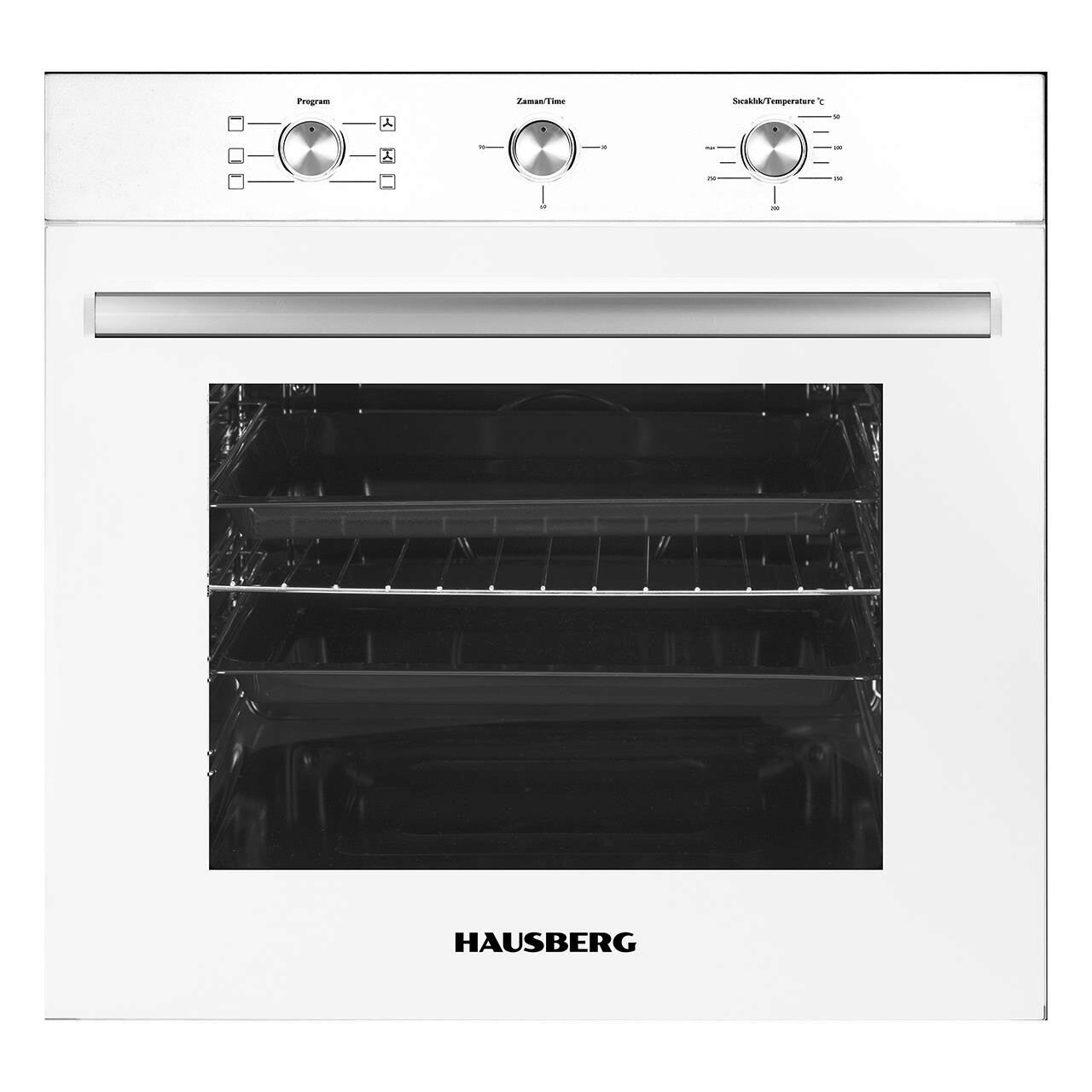 Cuptor incorporabil Hausberg HB-8053AB, Electric, Putere 2225 W, 71 l, 6 Functii, Ventilatie, Timer, Clasa A, Alb