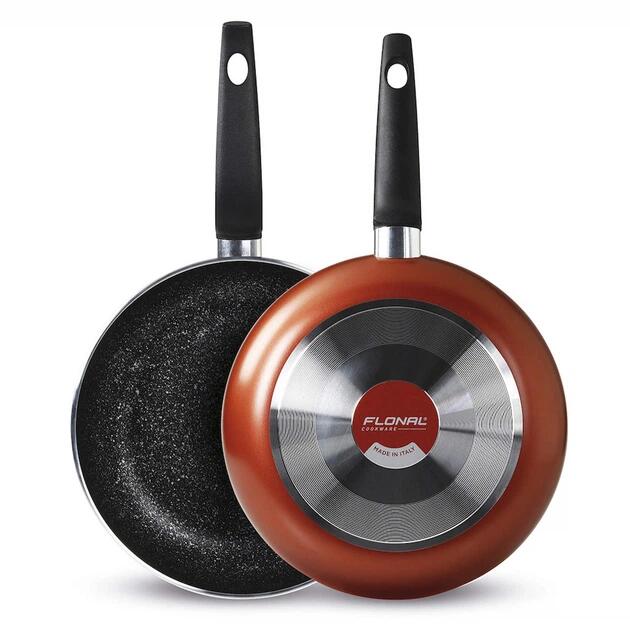 Tigaia mare Flonal Pepita Granit cu strat antiaderent este excelenta pentru reincalzirea rapida a cantitatilor mari de mancare, precum si pentru prepararea felurilor de mancare zilnice pentru o familie numeroasa. Invelisul interior multistrat Mineralite cu efect de piatra are proprietati excelente antiaderente si o rezistenta substantiala la abraziune, permitand gătirea alimentelor fara a adauga ulei, sau cu o utilizare minima a acestuia. In acelasi timp, invelisul exterior Easy Cleaning surface faciliteaza intretinerea vaselor, permitand spalarea in masina de spalat vase in moduri economice.