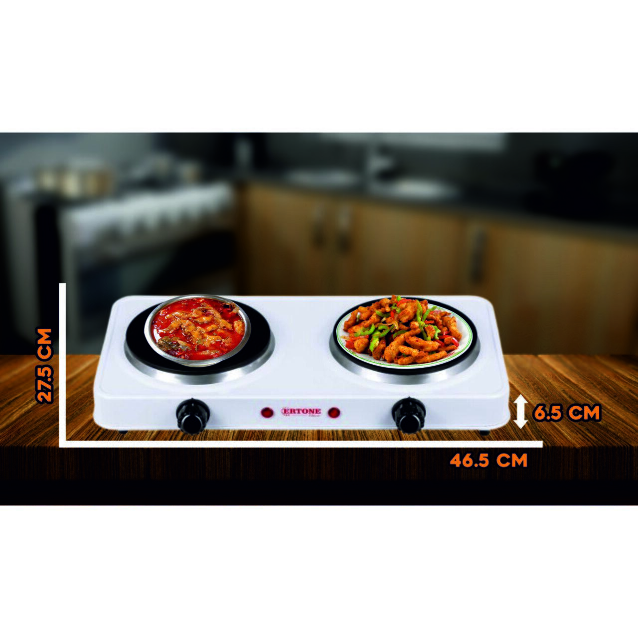 Plita electrica Ertone MN200AB, 1500 W, 2 arzatoare, Alb