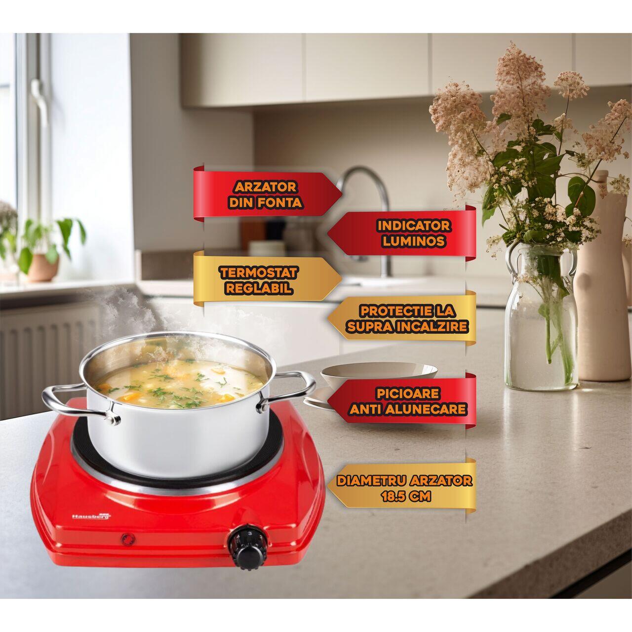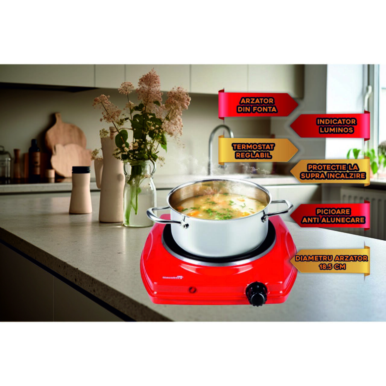 Plita electrica Hausberg HB-519RS, 1500 W, 1 arzator, termostat, Rosu