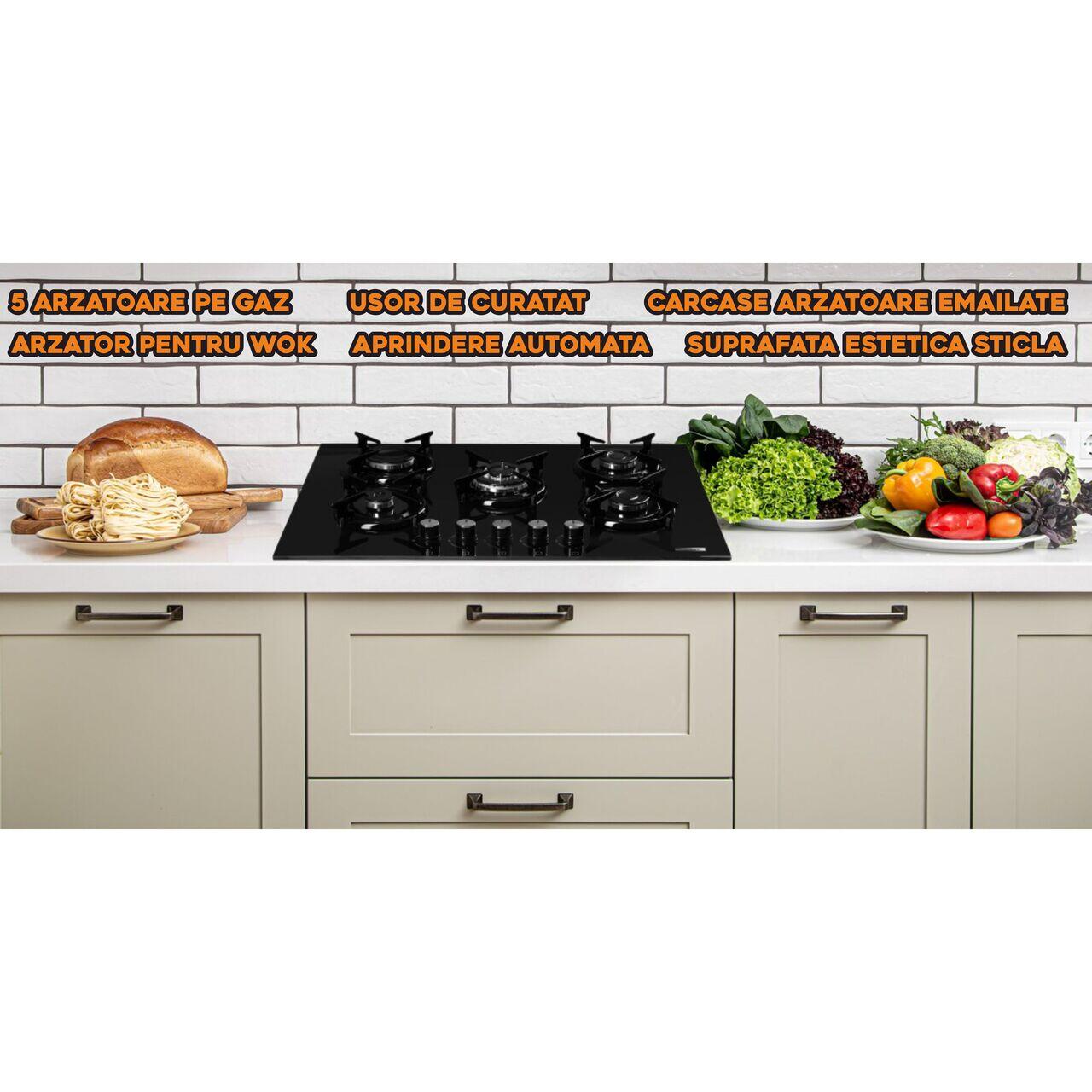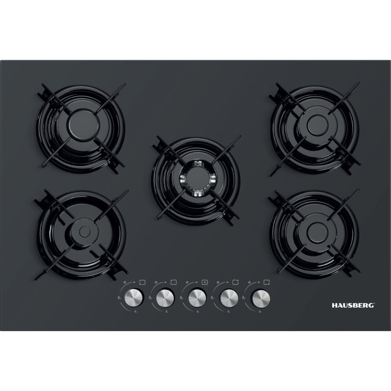 Plita incorporabila Hausberg HB-565NG, Negru, Gaz, 5 arzatoare