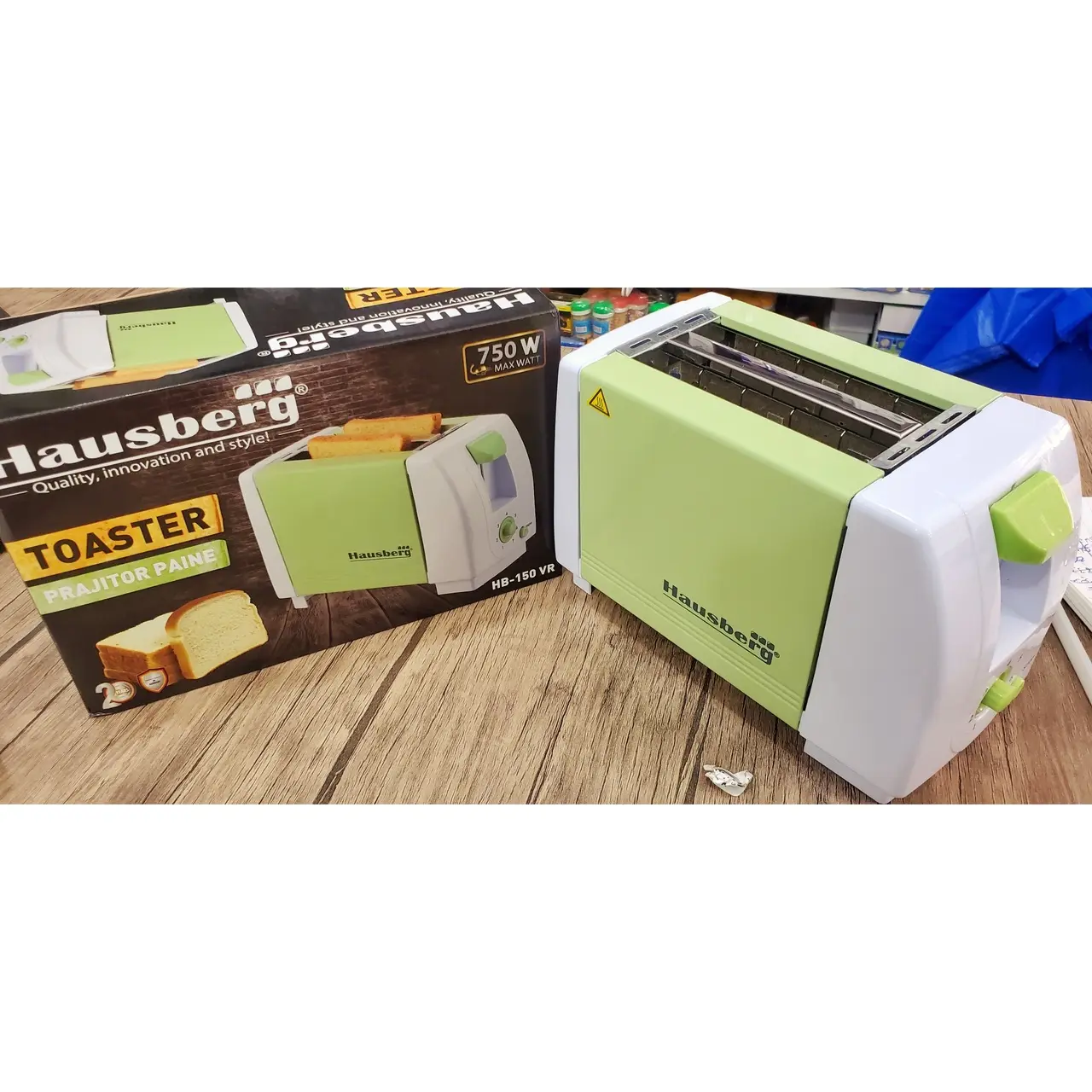 Prajitor de paine HAUSBERG HB-150VR, 750 W, capacitate 2 felii, 7 trepte reglare temperatura, oprire automata, Verde