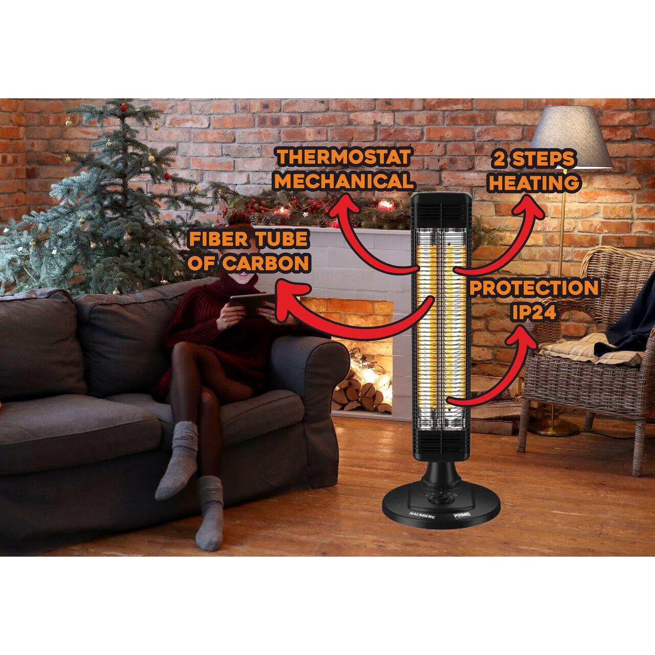 Hausberg HB-8565NG este alegerea ideală pentru încălzirea rapidă și uniformă a spațiilor mici și medii 🏠. Cu o putere maximă de 1000W ⚡ și un tub din fibră de carbon, acest radiator asigură un consum redus de energie și o distribuție eficientă a căldurii.