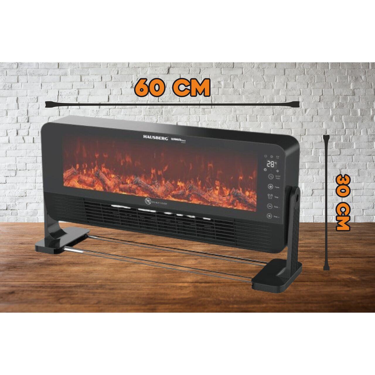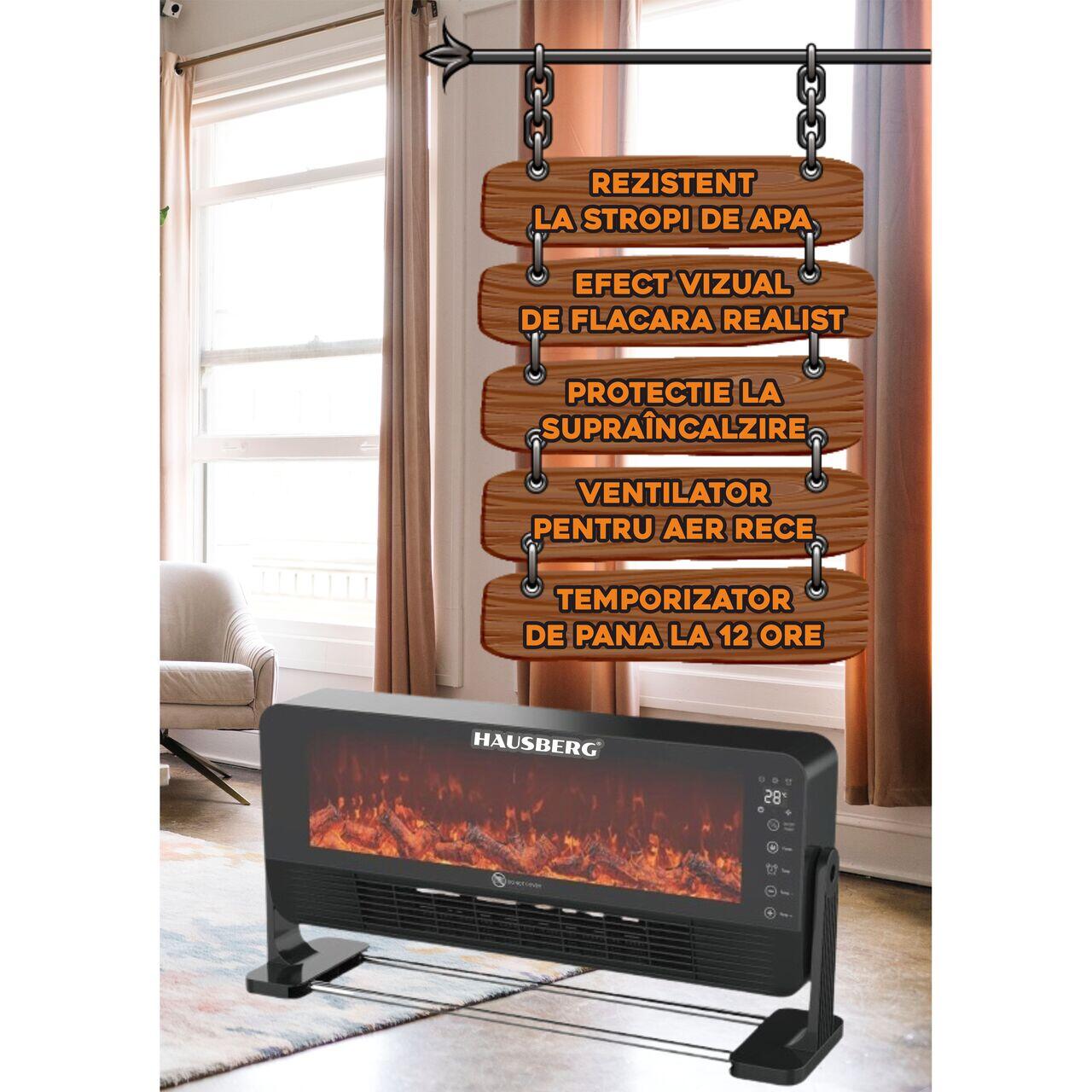 Semineu electric cu Ventilator Hausberg HB-8216NG, Telecomanda, 2000W, 2 setari incalzire, incalzire ceramic PTC cu efect de flacara, Termostat 15-35 grade C, protective IP24, Negru