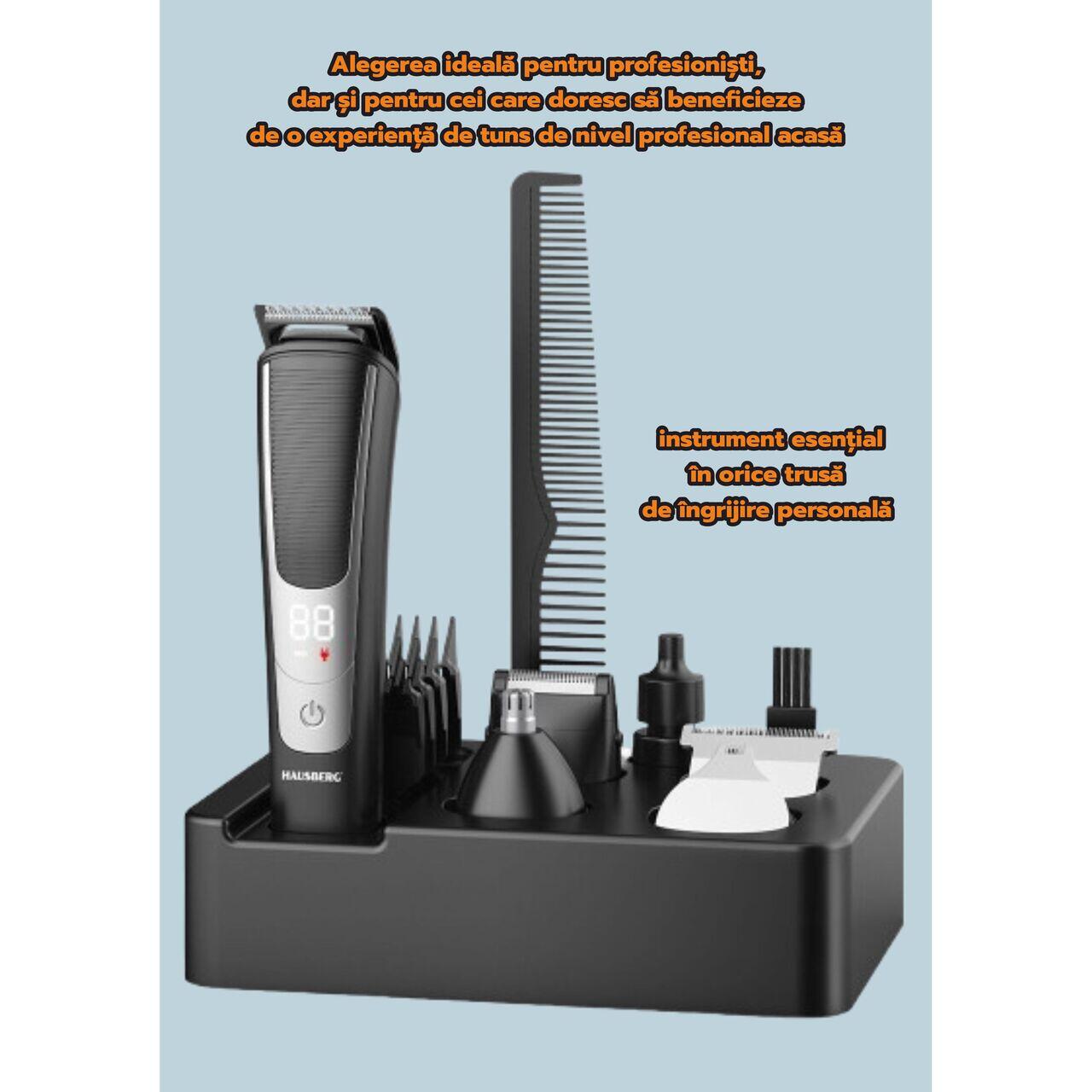 Set aparat de tuns profesional HAUSBERG HB-76GR, accesorii, autonomie 120 min, 5W, afisaj LCD
