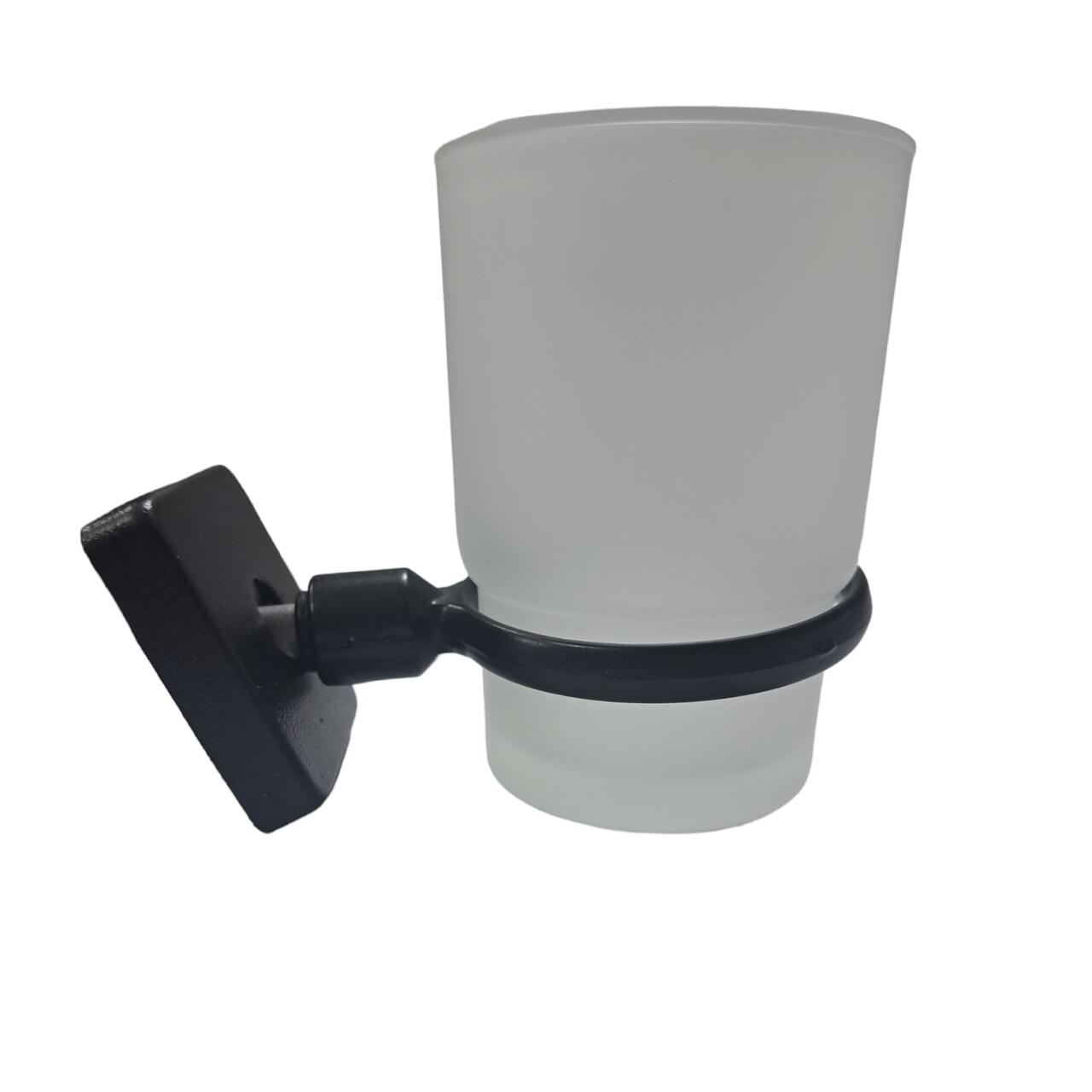 Fabricat dintr-un metal durabil și rezistent, suportul este conceput pentru a susține periuțele de dinți și paharul într-un mod sigur și stabil. Finisajul negru mat conferă un aspect sofisticat și elegant, integrându-se armonios în orice decor interior.