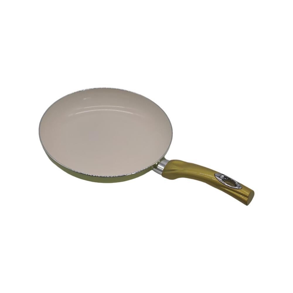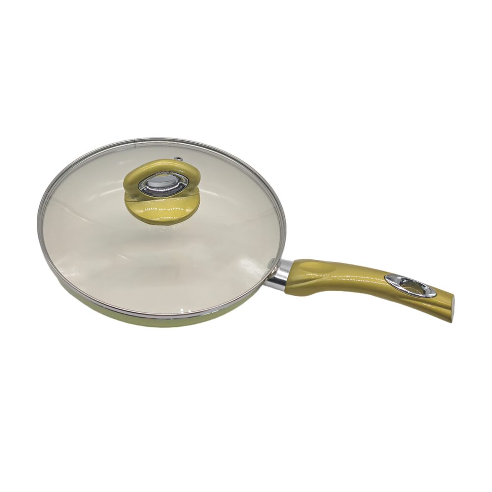 Tigaie din ceramică Hausberg HB-H716GA, diametru 24 cm, Galben, cu suprafață antiaderentă durabilă și încălzire uniformă. Ușor de curățat, cu mâner din silicon pentru un control sigur. Perfectă pentru gătit zilnic.