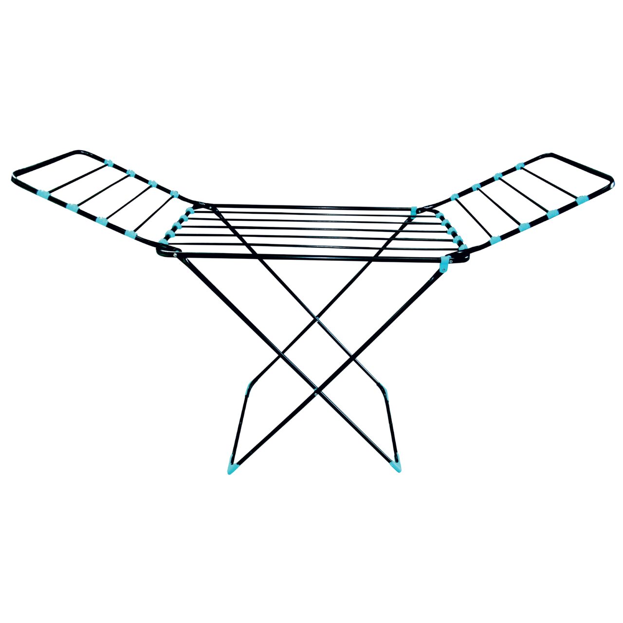 Atunci cand este strans, uscatorul are dimensiunile: 125 x 55 x 3 cm, iar atunci cand este desfacut ajunge la urmatoarele dimensiuni: 180 x 55 x 93 cm